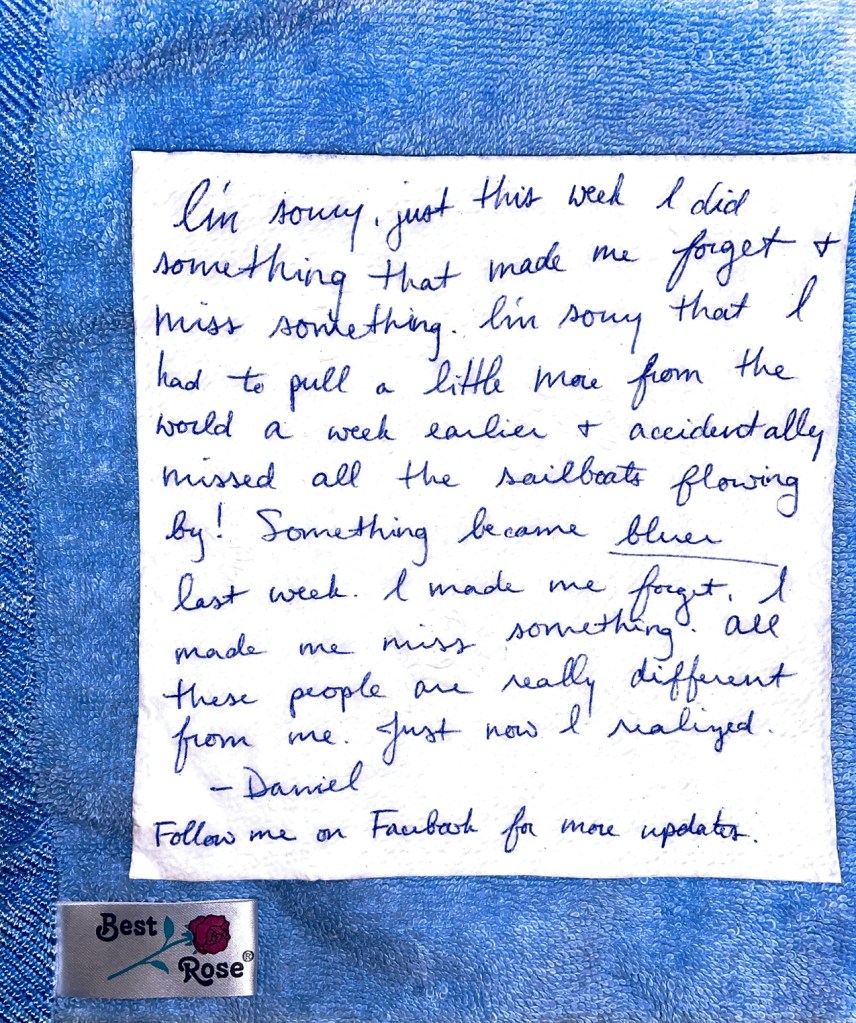 I’m sorry, just this week I did something that made me forget & miss something. I’m sorry that I had to pull a little more from the world a week earlier & accidentally missed all the sailboats flowing by! Something became bluer last week. I made me forget, I made me miss something. All these people are really different from me. Just now I realized.