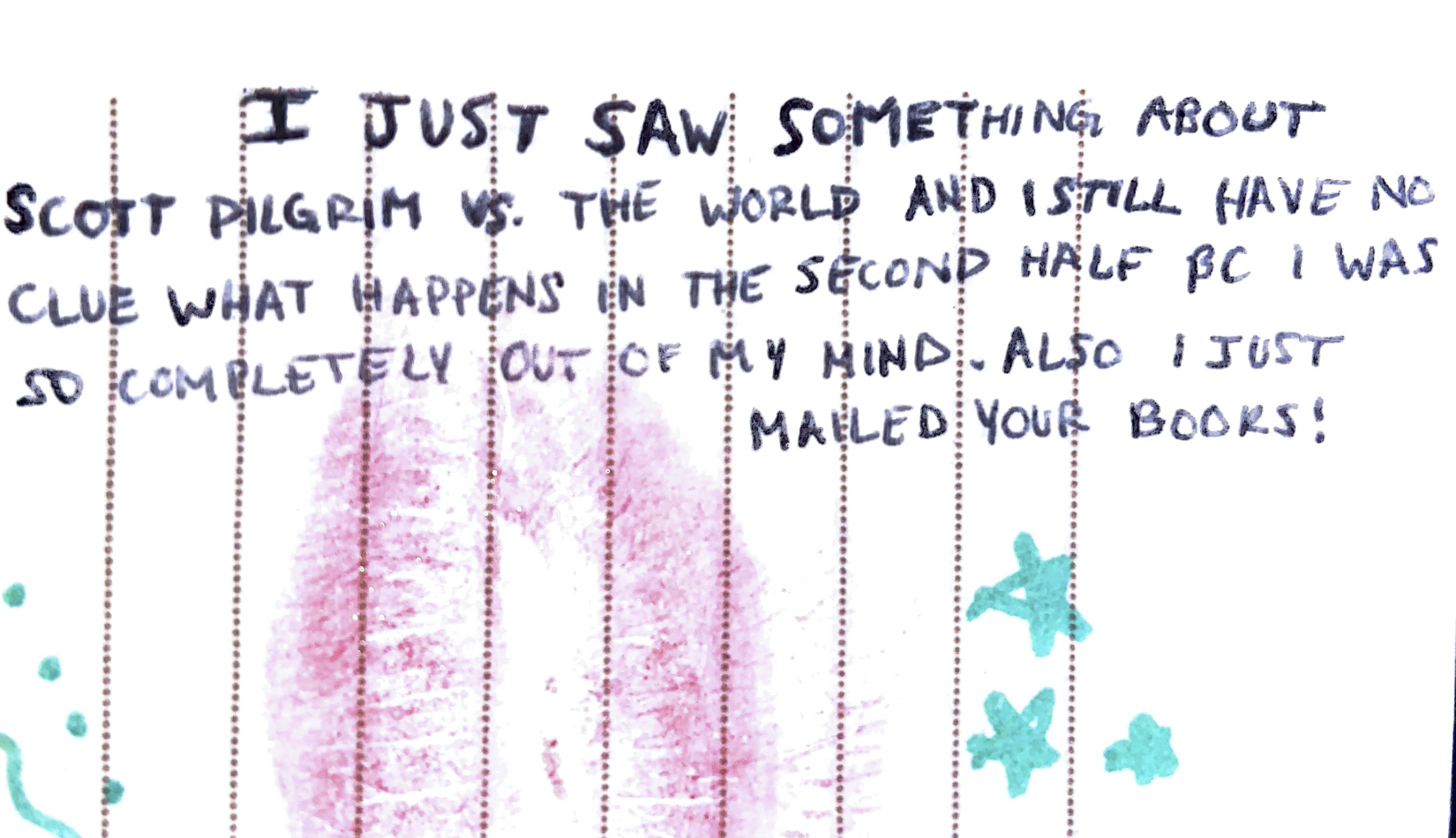 I just saw something about Scott pilgrim vs. the world and i still have no clue what happens in the second half of that movie bc I was so completely out of my mind. Also I just mailed your books!