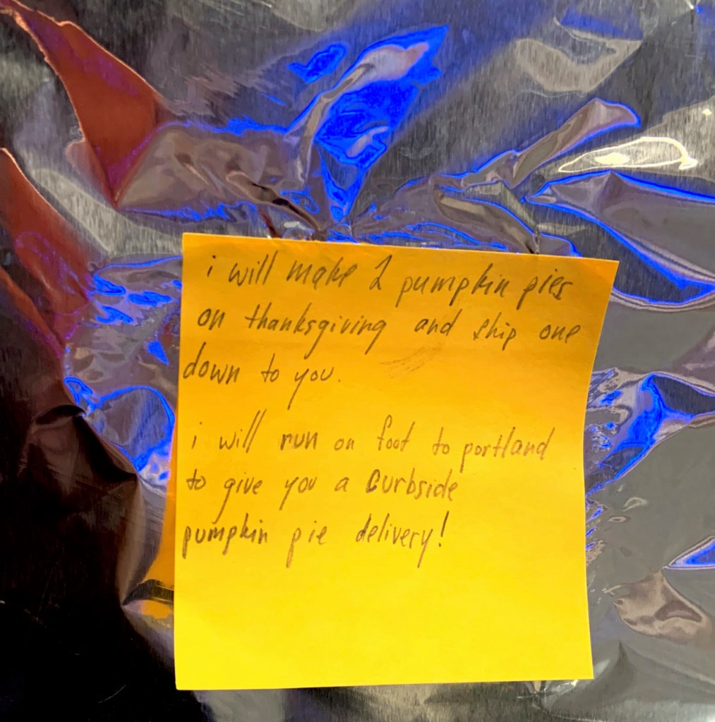 i will run on foot to portland to give u a curbside pumpkin pie delivery!
